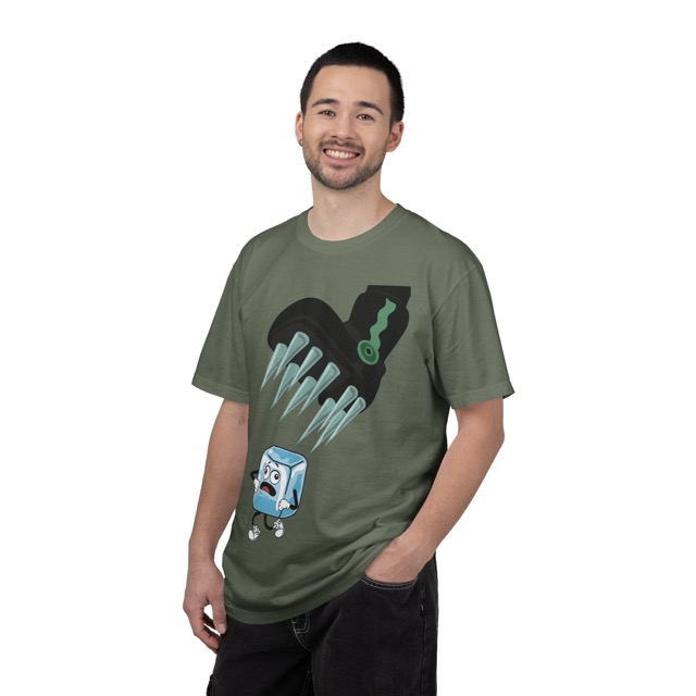 This Delulu Tees original graphic t-shirt uses a bold visual metaphor to make an anti-ICE statement. The design shows a heavy spiked boot coming down toward a cartoon ice cube with arms and legs, wide derpy eyes, and a panicked run that’s clearly not fast enough. The concept is intentionally direct to call out the horrendous nature of the Immigration and Customs Enforcement. It’s political art in a playful, cartoon style that still lands with impact, made for people who want their clothing to say what they believe without needing a long explanation. Designed, printed, and produced in-house in California by real people, this tee reflects Delulu Tees’ focus on human-made, original work with a clear point of view.