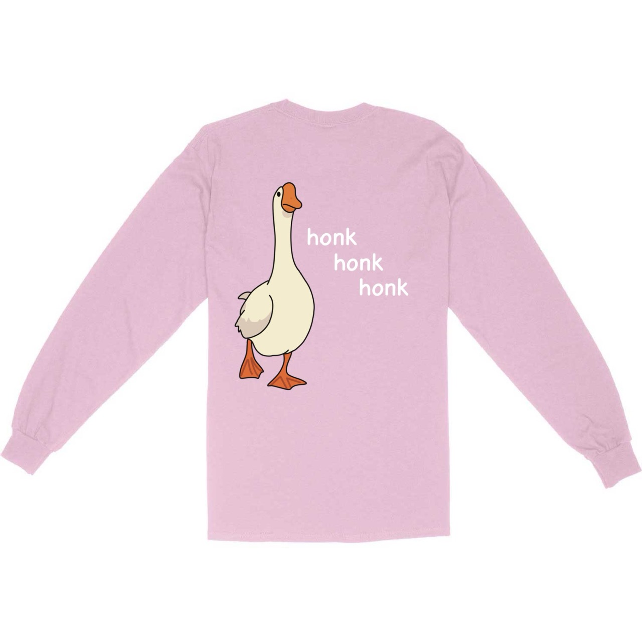 This original Delulu Tees double-sided graphic Tee leans fully into absurd humor and visual wordplay. The front features a cartoon goose with exaggerated honkers, a pink BCA ribbon worn like a scarf, and the phrase “Honk If You Like Honkers,” setting a cheeky, irreverent tone. The back continues the joke with a second goose, paired with the simple response “Honk, Honk, Honk.” Designed to be funny, unexpected, and intentionally over the top, this hoodie embraces satire without taking itself seriously. As with all Delulu Tees apparel, it is created, printed, and produced in house in California by sibling co-owners Kalie and Darian.